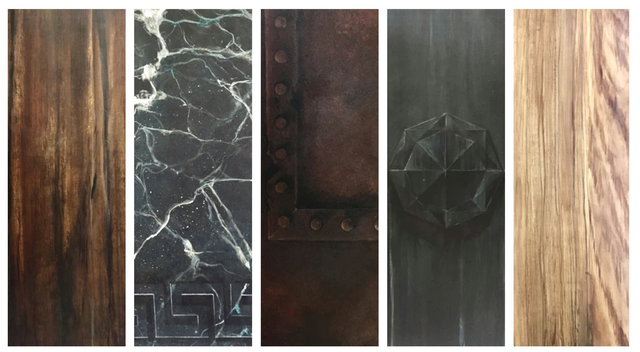 - Fausses matières et trompe l’œil : Marbre - Bois - Rouille - Vert de Gris.